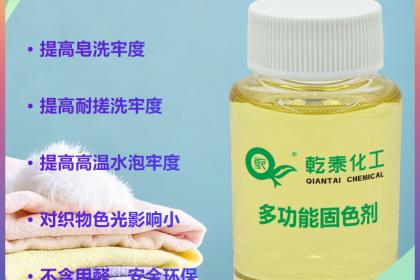 广州乾泰化工有限公司是一家自主研发、制造和销售纺织印染助剂系列产品的专业化工公司,包括前处理系列、固色剂系列、染色剂系列、增白剂系列和功能性整理系列,主要产品包括食毛剂(抛光酶)、防水剂、抗酚黄变剂、抗紫外线整理剂、牢度提升剂、涤纶/棉/尼龙增白剂、亲水软滑硅油、无醛固色剂等纺织印染助剂。